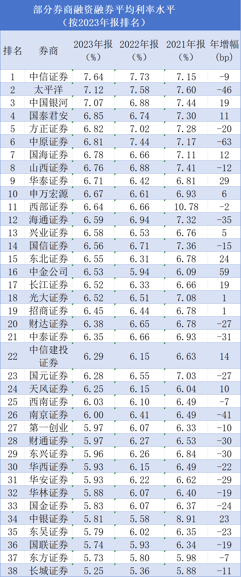 最新融資融券利率水平
