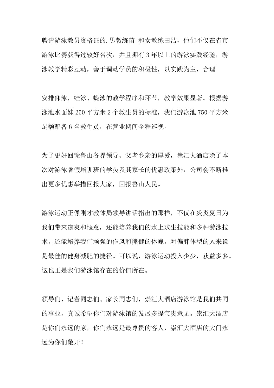 游泳比賽廣播稿:回溯歷程,頌揚水中英雄。運動員們在泳池中揮灑汗水,展現(xiàn)頑強拼搏的精神。從預(yù)賽到?jīng)Q賽,每一次躍入水中都是對自我的挑戰(zhàn)與超越。水中激戰(zhàn),見證速度與激情的碰撞,觀眾們的歡呼與掌聲為賽場增添熱烈氣氛。英雄們的輝煌時刻到來,成績揭曉,榮耀屬于每一位水中拼搏的勇士。