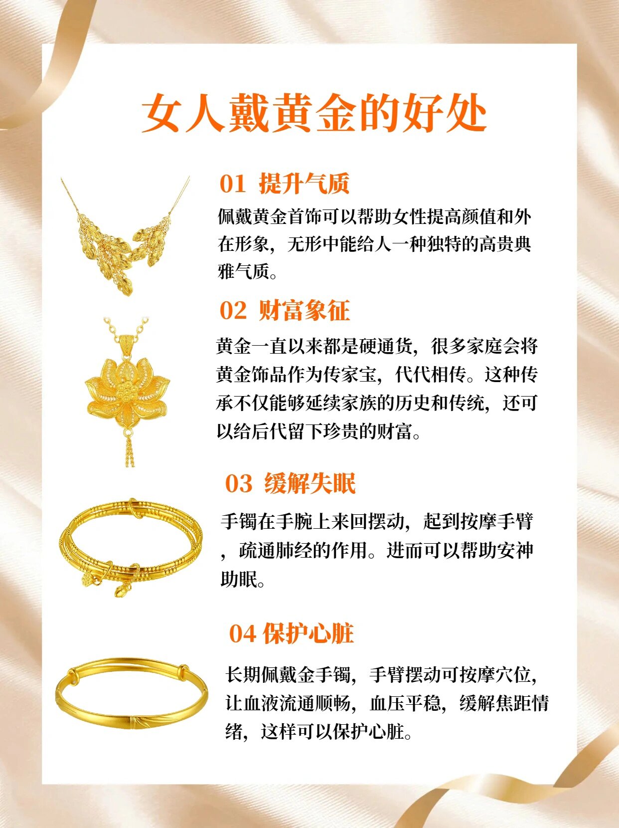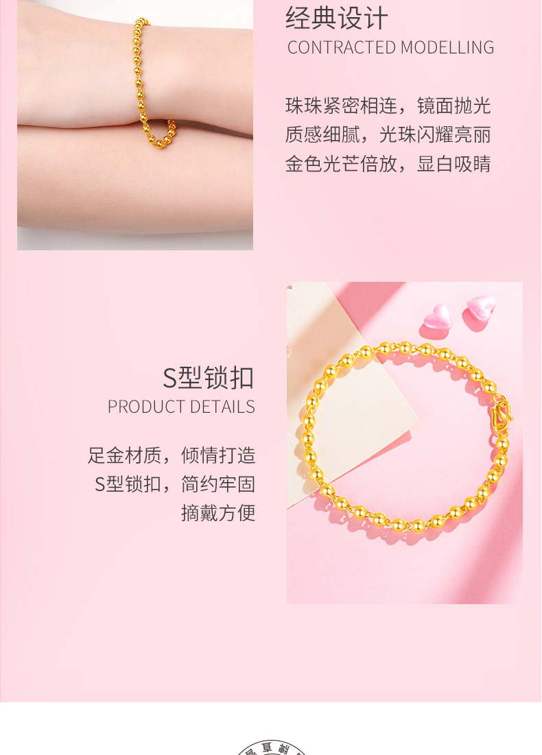 3、文化寓意:黃金在中國(guó)傳統(tǒng)文化中具有吉祥、富貴的象征意義,佩戴黃金手鏈也是對(duì)美好未來(lái)的期許和祝愿,承載著人們對(duì)幸福生活的向往。